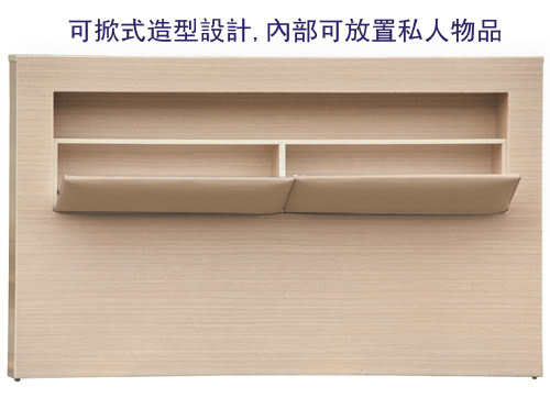 - 床頭箱造型,內部上層可放置物品